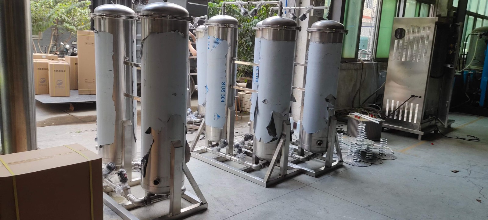 本系統為產量50L/Min的制氧機1套,外置無油空壓機、冷干機、精密過濾器、儲氣罐、制氧機、氧氣儲氣罐等組成。VCf臭氧發生器_臭氧消毒機_臭氧水機_制氧機_廣州佳環電器【官網】